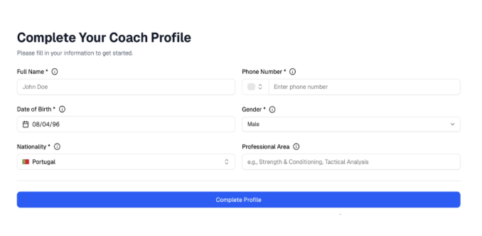 Complete Your Coach Profile by filling the required filters