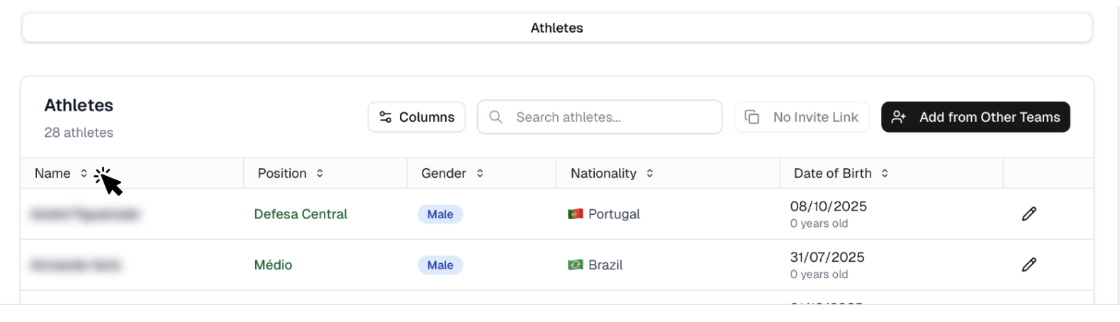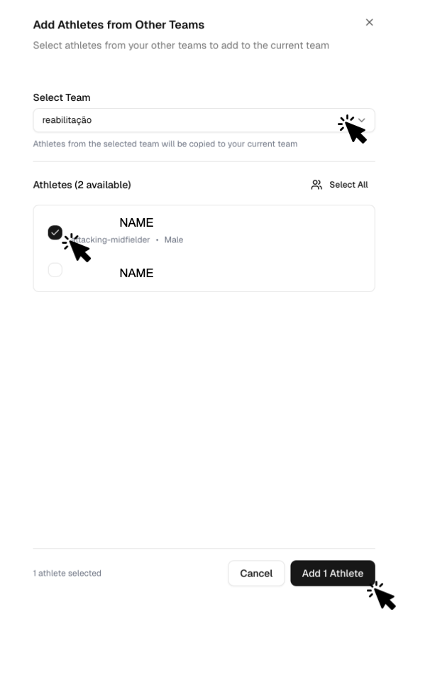 If you want to select all athletes, you can click the square on the left of Athlete Name in the Participants table.