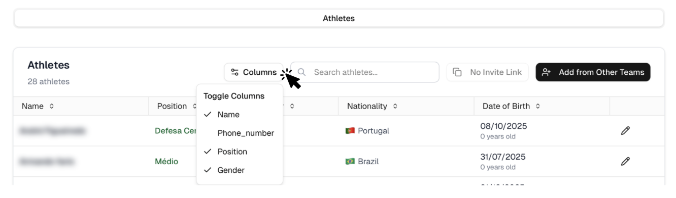 - Choose the players you want to see